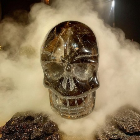 OBS OBS Rutilrøkkvarts Hodeskalle ikke vanlig å se disse . Masse rutiler i denn som veier 158 gram og er ca 4,5 cm høy.