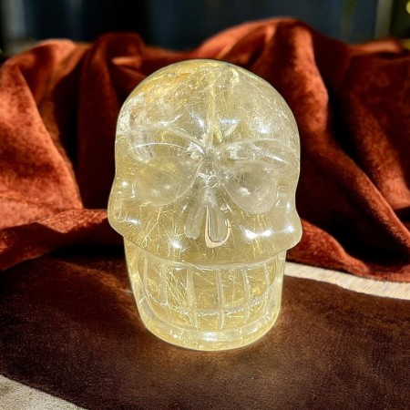 Hovedskalle i Rutilkvarts. Klar Kvarts med masse rutiler i. Denne veier 166 gram og er ca 4,5 cm høy.